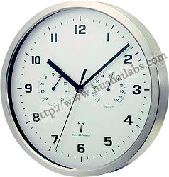Stainless steel ring with brush finish, HIPS back case, bi-metal thermometer sensor and hygrometer, glass lens, PVC dial, aluminum and brass hands, 1 x AA alkaline battery incl.