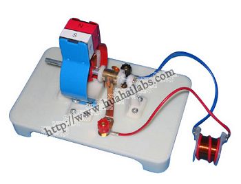 For demonstrating the construction of motor, verifying the relationship between the rotating direction and the current direction, and between the rotating direction and the directing of magnetic field, so as to make the students understanding the working principle of motor.