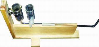 To demonstrate rates of transpiration and of water absorption by a cut shoot, with a graduated capillary tube bent down at right angle at one end with a small orifice and having water reservoir with glass stopcock and the end tube with rubber stopper for the plant shoot at the other end, on base.