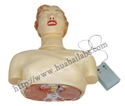 This model shows the half body from the head to the sixth rib of the chest. The cross-section is painted with different colors to show the different organs clearly and vivid. The full shapes of the heart and the lung show the various movements when demonstrate heart pressure and mouth to mouth respiration or mouth to nose respiration.