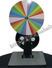 With seven spectrum colors: red, orange, yellow, green, blue, indigo and violet. By rotating the disc, the seven-color-light can be combined into white light. Sturdy stand and spare belt included.
